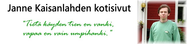Lapsuudenperhe ja lähisukuTuloni tänne 22.10.1984Koillislappilaiset ottivat lokakuun 22. päivän maanantaiaamuna vastaan nuoskaisessa räntäsateessa. Elettiin Herran vuotta 1984 Suomen tasavallassa. Presidenttinä oli Mauno Koivisto ja pääministerinä Kalevi Sorsa. Eivät meidän perheen miehiä. Äitini ja isovanhempani olivat kannattaneet Johannes Virolaista sen jälkeen, kun Urho Kekkonen oli luopunut virastaan presidenttinä. Kaikkien aikojen suurin suomalainen odotti nyt kuolemaan Tamminiemen yksinäisenä ja unohdettuna vanhuksena. Maa eli kyllä nousukauttaan, Kemijärvelläkin väkiluku kasvoi, oli Salcompin, Orionin ja Veitsiluodon tehtaat. Ja aluesairaalassa synnytysosasto, jotta minäkin saatoin tulla maailmaan sillä seudulla, josta oli tuleva kotini tämän maallisen pyrähdyksen ajaksi.Syntymäpäivänäni käytiin kunnallisvaalit, tuolloin valtuustoon tulivat ensi kertaa mm. Irma Kortelainen ja Ahti Majava, joista tuli sittemmin hyviä yhteistyötovereitani kunnalliselämässä. Kemijärveläiset olivat ehtineet äänestää reilun tunnin ajan, kun näin päivänvalon. Oikeastaan minun olisi lääkärien mukaan tullut syntyä vasta viikkoa myöhemmin, mutta koska pääni oli jo silloin niin iso, niin oli pakko ottaa ulos aikaisemmin ja keisarinleikkauksella. Samana päivänä, kun synnyin, lappilaisen elämänmenon kuvaaja, kirjailija Annikki Kariniemi siirtyi iäisyyden rajan ylitse ja yhdeksän päivää myöhemmin Intian rautarouvan Indira Gandhin elämä katkesi omien henkivartijoiden ampumaan konekiväärituleen. Synnyin vanhempieni, yo-merkonomi Tarja Kaisanlahden ja toimiupseeri Unto Kaisamatin vanhimpana ja ainoana yhteisenä lapsena. Vanhempieni yhteiselämän päätyttyä isäni meni naimisiin ja sai kaksi poikaa, jota kautta minulla siis on kaksi nuorempaa veljeä. Tässä kuvassa olen vastasyntyneenä isovanhempieni Else ja Heino Kaisanlahden kanssa. Heino-ukkini on kemijärveläinen poromies ja hoitanut myös monia liiketoimia. Else-mummini on entinen oppilaskodinhoitaja ja tuntiopettaja. Isovanhempani avioituivat joulukuussa 1959, äiti on heidän ainoa lapsensa. Vanhempani, samoin molemmat ukkini ovat kotoisin Kemijärveltä ja polveuden pääosin niistä vanhoista uudisraivaajasuvuista, jotka ensimmäisenä uskaltautuivat Pohjan perukoille. Kemijärven ensimmäinen asukas Paavali Halonen on yksi esi-isistäni. Kemijärvi on ollut minulle hyvä paikka asua ja elää. Olen syvästi juurtunut kotiseutuuni. Tietysti näillä selkosilla olen kokenut muutakin kuin auringonpaistetta, mutta myös vastoinkäymiset koetan ainakin joskus kääntää vahvuudekseni. Äidinpuoleinen sukuniKuvassa äitini, minä, Else-mummi ja Heino-ukki 1980-luvun jälkipuoliskolla. Asuin äitini kanssa Kemijärven Särkikankaalla, Koulukadulla keväästä 1987 lähtien. Vietin paljon aikaani Harjutien mummolassa. Talo on vanha rintamamiestalo, jonka Elsen isä, koneasiamies Akseli Huttunen rakensi v. 1950. Samalla tontilla sijaitsi jo aikaisemmin mummini lapsuudenkoti. En ollut lapsena tarhassa tai päivähoidossa, vaan isovanhempieni hoidossa äitini ollessa työssä.Äidinäitini Else on ollut minulle merkittävä hahmo ja hänen voimakas persoonansa muodostui keskeiseksi tekijäksi lapsuudessani ja kasvatuksessani. Onko lopputulos ollut onnistunut, sen saa jokainen itse mielessään ratkaista. Äitini Tarja Kaisanlahti on asunut hänkin koko elämänsä Kemijärvellä. Työskenneltyään kirjanpitäjänä hän kouluttautui 1990-luvun alussa sairaanhoitajaksi. Lamavuosina hän oli vuoden työttömänä, ja pääsi sen jälkeen työskentelemään kehitysvammahoitajana. Vuodesta 1998 lähtien hän on ollut työssä Kansaneläkelaitoksen palveluksessa. Vuonna 2000 äitini liittyi Keskustapuolueen jäseneksi ja tuli syksyn kunnallisvaaleissa valituksi valtuustoon. Hän on toiminut sittemmin mm. kaupunginhallituksessa, sosiaali- ja terveyslautakunnassa sekä Kemijärven Keskustan kunnallisjärjestön puheenjohtajana. Kuvassa minä, äiti ja Heino-ukki Rovajärven jäällä talvipäivää viettämässä joskus 1990-luvun alussa. Heino-ukkini on kotoisin Rovajärven lähistöltä, Rovalan tilalta. Tilan perusti ukkini ukki, metsänvartija Johan Fredrik Kaisanlahti (1850-1921), joka kohosi piian aviottomasta lapsesta menestyväksi porotilalliseksi. Rovalan tila toimi aikanaan myös kestikievarina Rovaniemen ja Kemijärven väliä kulkeneille matkalaisille. Monet Rovalan suvun miehet ovatkin tunnettuja poikkeuksellisen kovasta yritteliäisyydestään, jopa työhulluudestaan, ja ovatkin leivässä pysyneet. Ukkini vanhemmat olivat Johan Eemil Kaisanlahti (1890-1949) ja hänen vaimonsa, emäntä Hilda Josefiina o.s. Javarus (1900-73). Ukkini lapsuudenperheessä oli 14 lasta; kaksi isosetääni muutti jo nuorena Yhdysvaltoihin, missä asuvat edelleen. Armeija pakkolunasti osan Rovalan maista ja alueella on nyt Rovajärven ampumaharjoitusalue. Kaikkia maita eivät kuitenkaan vieneet ja mm. meillä on kesähuvila Rovajärven rannalla. Martinvaarassa ukkini piti matkamuistoyritystä vuosikymmenien ajan ja lapsena seurasin minäkin paljon kaupankäyntiä. Äidinäitini äiti Hulda Huttunen o.s. Mylläri (s. 12.11.1905 - k. 1.2.1990) Hulda Huttunen oli muuttanut Kemijärveltä kotikaupunkiinsa Rovaniemelle jo vuonna 1965, mutta perheeni piti häneen tiiviisti yhteyttä ja erityisesti Else-mummini piti huolta äidistään. Elämäntyönsä Hulda Huttunen teki kotiäitinä. Hänen miehensä Akseli Huttunen (1900-73) oli koneasiamies, työnjohtaja ja kolmen sodan veteraani. Jo 18-vuotiaana hän taisteli valkoisten Lapin jääkäreiden retkikunnassa Petsamossa. Akseli Huttunen, ainakin omasta mielestään lupsakka savolainen, oli tunnettu myös persoonallisena supliikkimiehenä. Tiettävästi olen perinyt häneltä sanavalmiuteni ja kuulemma omintakeisen huumorintajuni. Vaikka en tavannut koskaan Akseli Huttusta, olen tutkinut paljon hänen monivaiheista elämäänsä ja tutustunut sillä tavoin tä